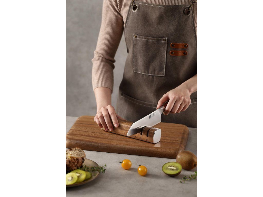 Broušení nožů nemusí být záležitostí zkušených kuchařů. Třístupňový brousek XinZuo je navržen pro každodenní použití v domácí kuchyni – bez nutnosti znát správný úhel, bez brusných kamenů, bez dlouhého trénování. Stačí přiložit čepel do drážky a táhnout. O zbytek se postará trojice brousicích systémů ukrytých v těle brousku z ořechového dřeva.