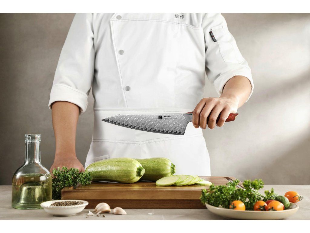 Zajímavost: XinZuo jako přední inovátor v oblasti výroby kuchyňských nožů kombinuje tradiční a nejmodernější techniky výroby. Díky jeho nejmodernější metodě vakuového tepelného zpracování mají kuchyňské nože XinZuo ve srovnání s noži vyrobenými pouze běžným tepleným zpracováním vyšší tvrdost a ostrost, též delší živostnost. Ve spojení s tradičním závěrečným ručním ostřením nožů mistry nožíři, s jejichž umem předávaným z generace na generaci se žádný stroj nemůže srovnávat, mají kuchyňské nože XinZuo i prémiovou ostrost, kterou strojově ostřené nože nedosahují.