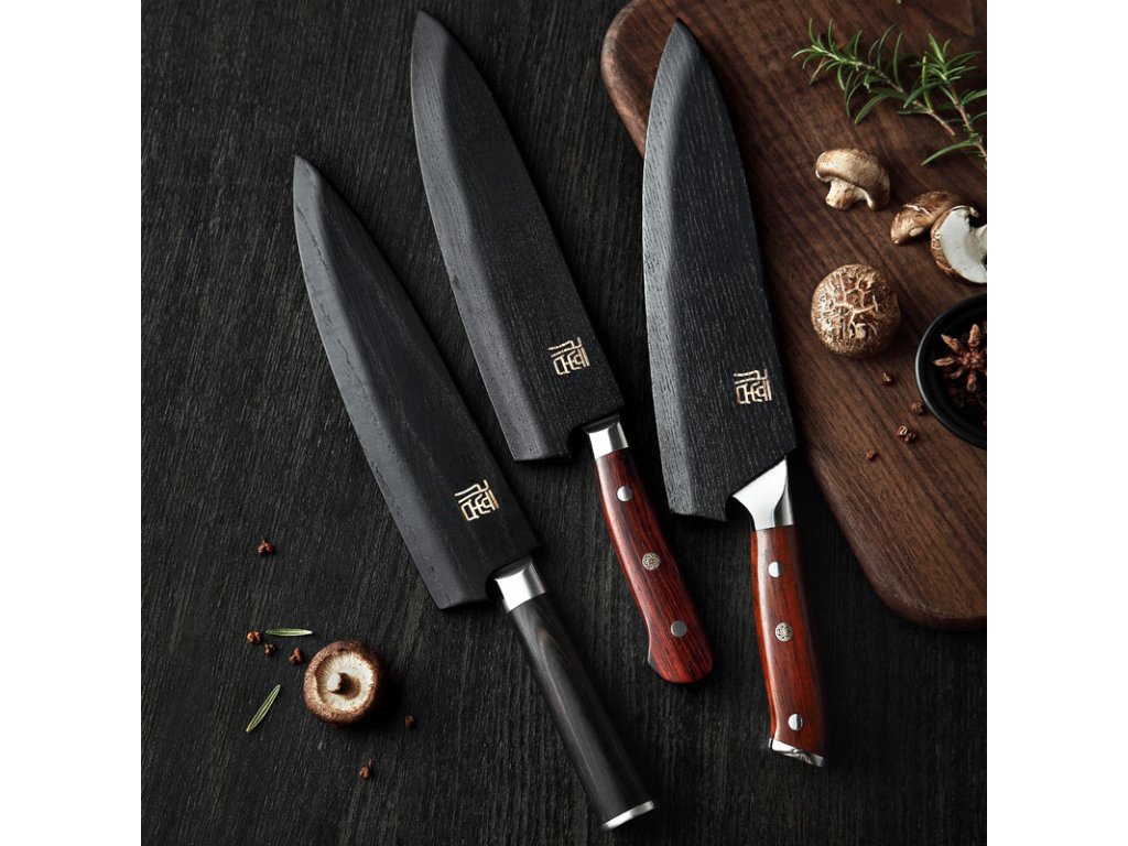 Toto dřevěné pouzdro je určeno pro santoku nože: