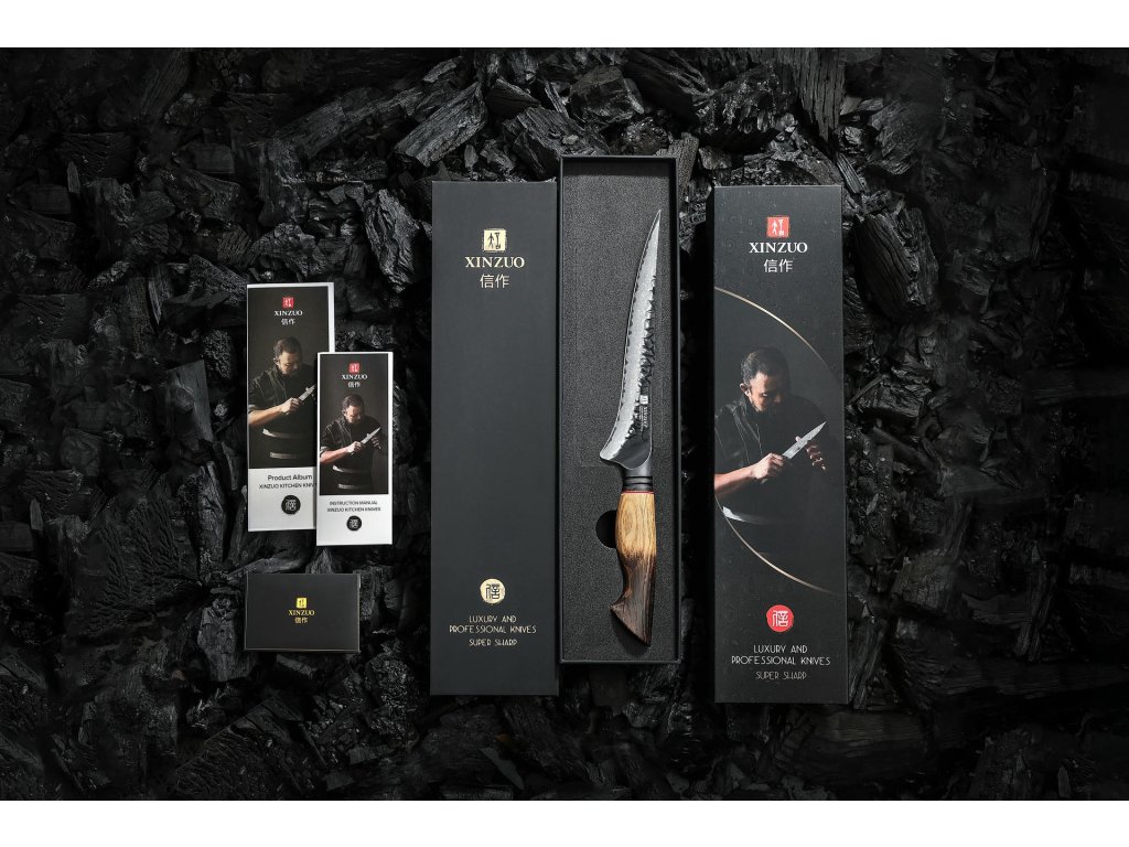Zajímavost: XinZuo jako přední inovátor v oblasti výroby kuchyňských nožů kombinuje tradiční a nejmodernější techniky výroby. Díky jeho nejmodernější metodě vakuového tepelného zpracování mají kuchyňské nože XinZuo ve srovnání s noži vyrobenými pouze běžným tepleným zpracováním vyšší tvrdost a ostrost, též delší živostnost. Ve spojení s tradičním závěrečným ručním ostřením nožů mistry nožíři, s jejichž umem předávaným z generace na generaci se žádný stroj nemůže srovnávat, mají kuchyňské nože XinZuo i prémiovou ostrost, kterou strojově ostřené nože nedosahují.