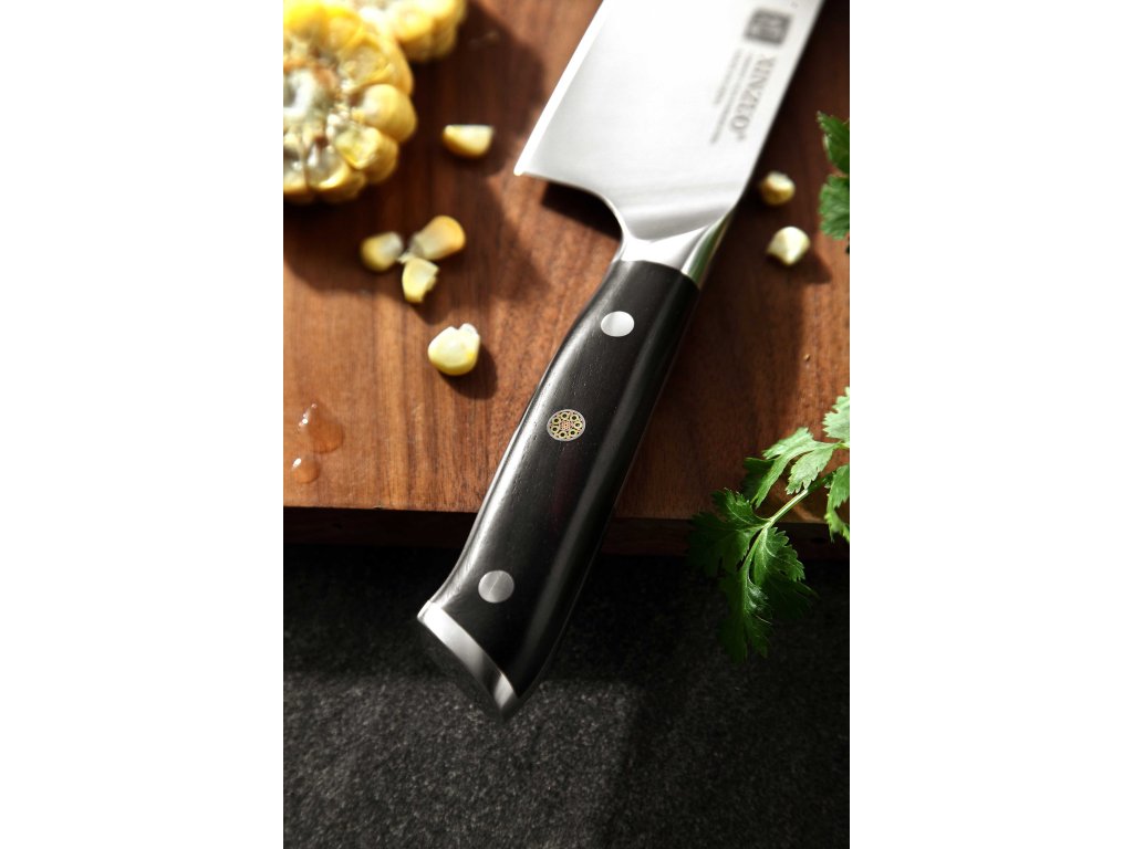 Zajímavost: XinZuo jako přední inovátor v oblasti výroby kuchyňských nožů kombinuje tradiční a nejmodernější techniky výroby. Díky jeho nejmodernější metodě vakuového tepelného zpracování mají kuchyňské nože XinZuo ve srovnání s noži vyrobenými pouze běžným tepleným zpracováním vyšší tvrdost a ostrost, též delší živostnost. Ve spojení s tradičním závěrečným ručním ostřením nožů mistry nožíři, s jejichž umem předávaným z generace na generaci se žádný stroj nemůže srovnávat, mají kuchyňské nože XinZuo i prémiovou ostrost, kterou strojově ostřené nože nedosahují.