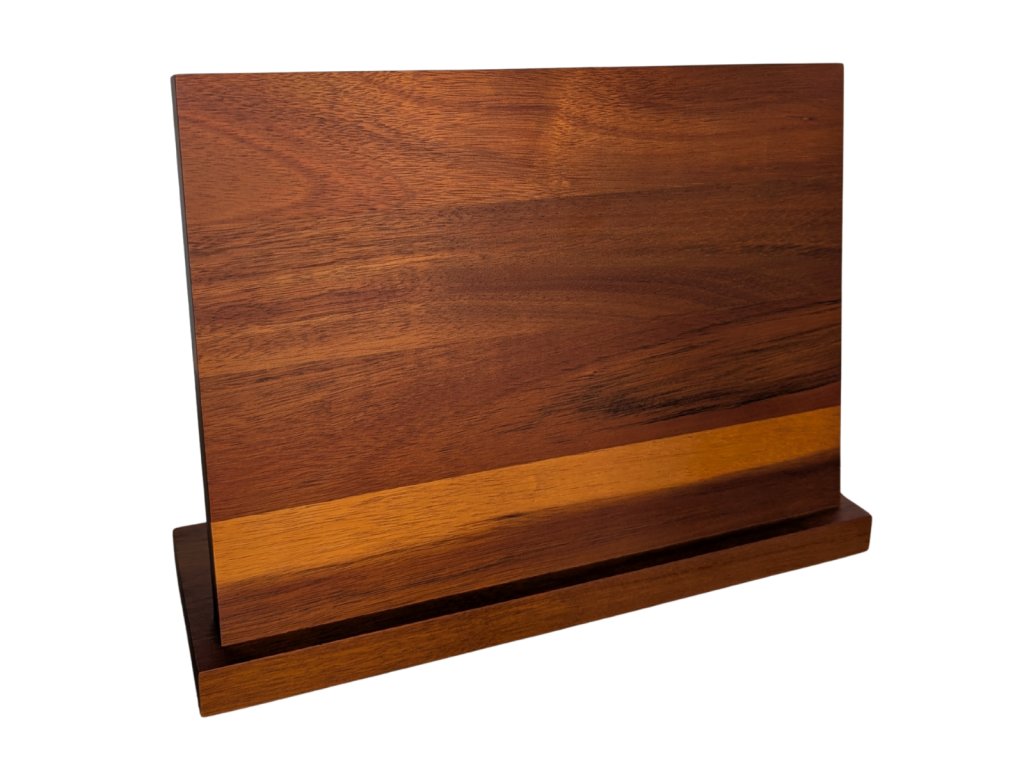 Stojánek na nože z akáciového dřeva s magnetem, mějte svoje nože jako designový doplněk Vaší kuchyně. Stojánek je vyrobený z výběrového dřeva z akácie s magnetem pro uchycení nožů a gumové nožičky.