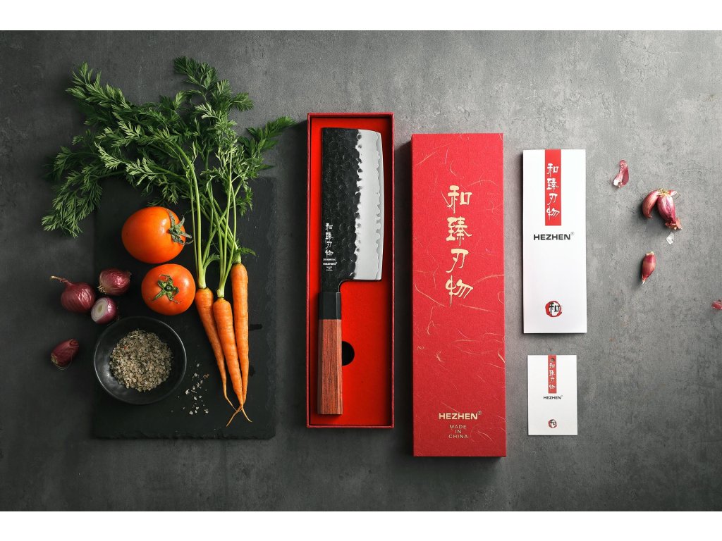 Nakiri nůž HEZHEN PM8S 6,8" je zabalen v luxusní dárkové krabičce v červené barvě, se kterou je ideálním praktickým dárkem do domácnosti. Vhodný jako dárek ke svatbě, kolaudaci nového bydlení, narozeninám, jakékoliv sváteční události či běžné návštěvě. Svým luxusním vzhledem dárková krabička i v ní obsažený elegantní nůž HEZHEN s tradiční rukojetí od výrobce XinZuo udělají radost každému obdarovanému.