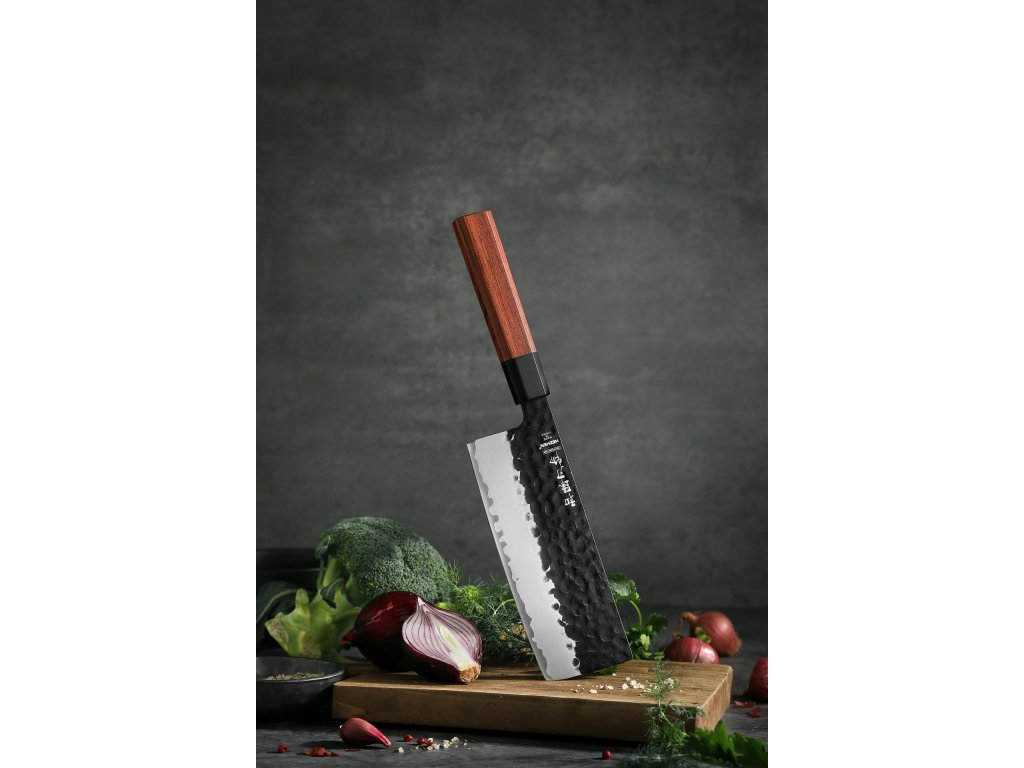 Nakiri nože spadají mezi japonské typy nožů. Jsou speciálně uzpůsobené pro krájení zeliny a bylin. Nakiri nůž má velmi širokou čepel se zaobleným ostřím pro pohodlné krájení kolíbavým pohybem. Poradí si se sekáním a krájením i tvrdé kořenové zeleniny bez nutnosti vynaložení velké fyzické síly. Zeleninu dokáže nakrájet na velmi tenké plátky a proužky, jak jste zvyklí z asijských restaurací. Široká čepel nakiri nože umožňuje snadné přenášení zpracovaných surovin na ni.