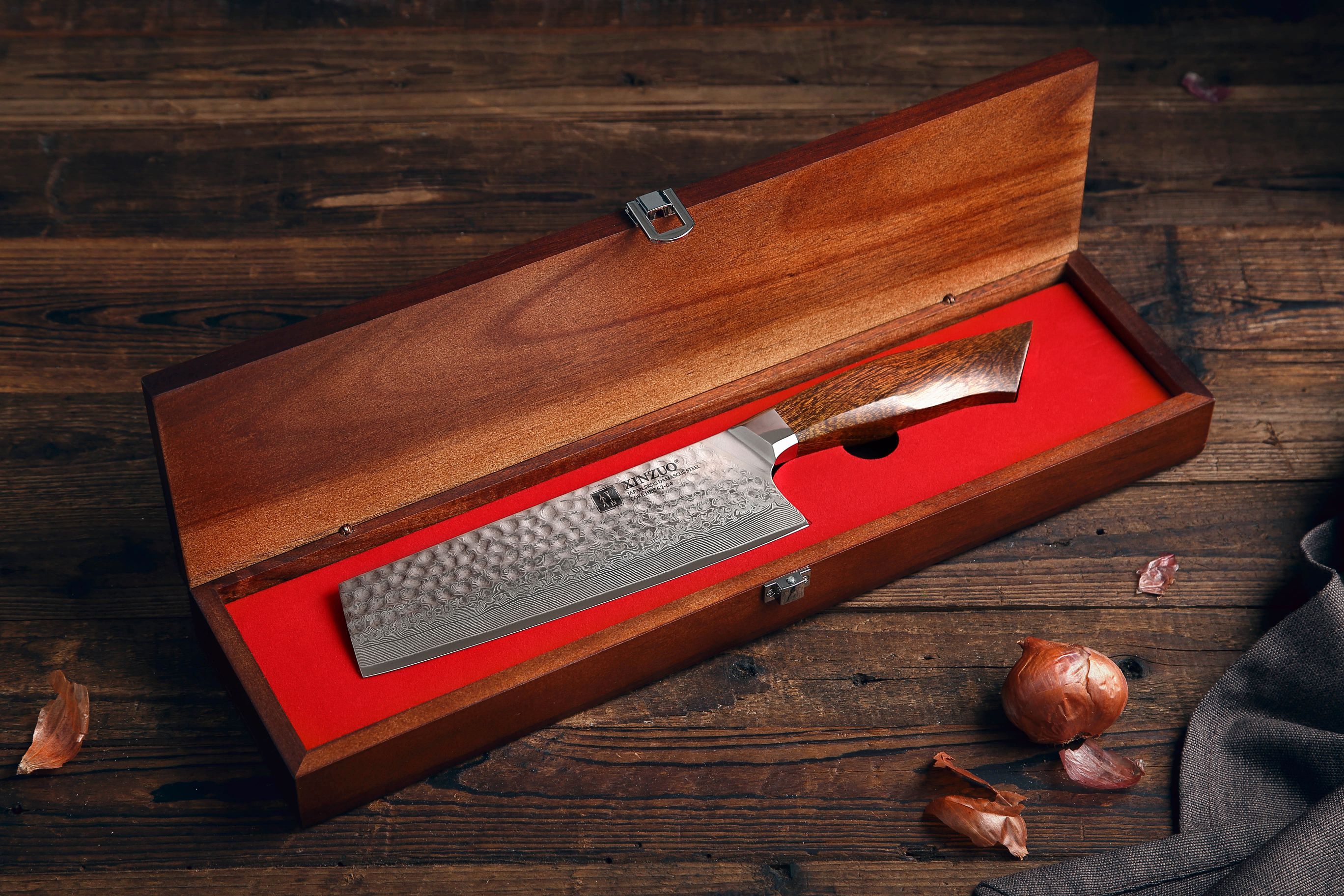 Nakiri nůž XinZuo Feng 7,3" z řady B32D je zabalen v luxusním dřevěném boxu, se kterým je ideálním praktickým dárkem. Dřevěný box uchvátí obdarovaného či vás svým elegantním zpracováním sám o sobě, natož po jeho otevření a prvním pohledu na nůž XinZuo. Dřevěný box se hodí i pro dlouhodobé uchovávání nože, které je šetrné k jeho ostří.