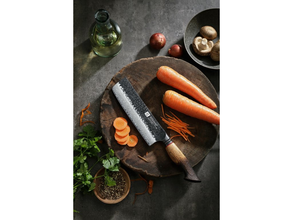 Nakiri nůž XinZuo Mo X06 s velkostí 6,8" pochází z tradičního čínského města nožů Yangjiang, ve kterém se vyrábí ty nejlepší nože celá staletí. Místní mistři si své umění výroby a opracování nožů předávají z generace na generaci. XinZuo při výrobě tohoto nože využívá to nejlepší z moderní a tradiční výroby nožů. Každý nůž od výrobce XinZuo je jedinečný, díky závěrečnému preciznímu ručnímu opracování.