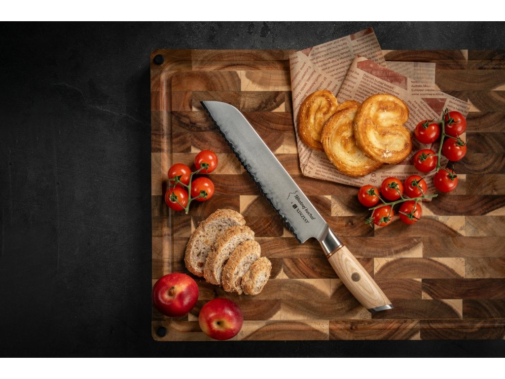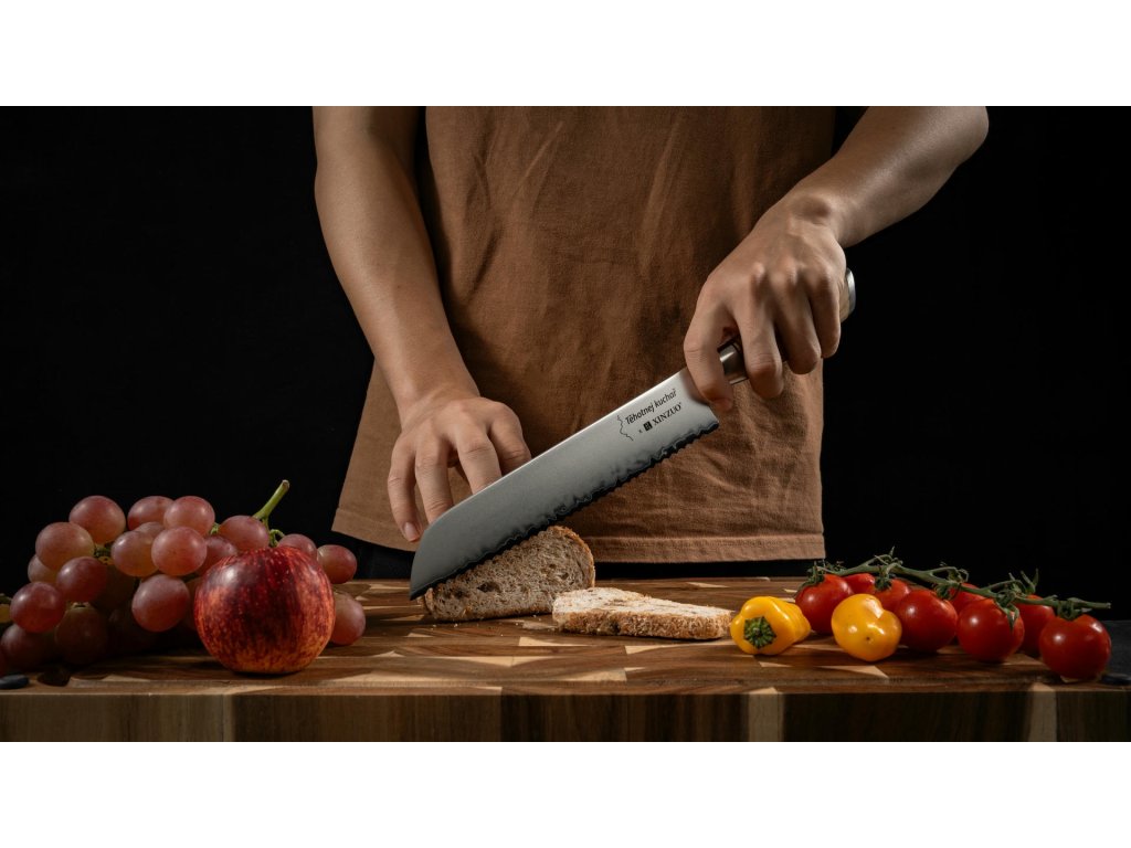 - Ve spolupráci s Těhotným kuchařem jsme připravili speciální řadu kuchyňských nožů, do které spadá i tento nůž na pečivo.