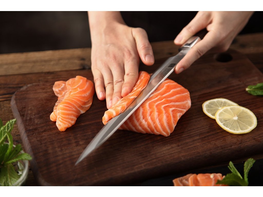 Sashimi nůž má historický původ v Japonsku, odkud pochází i celosvětově oblíbené sushi. Název tohoto nože japonského typu je spjat právě se sushi, konkrétně s oblíbeným sushi sashimi. Sashimi nůž má ikonickou dlouhou čepel s nízkou výškou, která umožňuje ladně krájet tenké plátky čerstvého syrového rybího masa na jeden řez. Bez potrhání a zbytečného narušení struktury masa. Ostří nože je netradičně broušeno pouze z jedné strany čepele. Jednostranné ostří sashimi nože je ideální pro krájení plátů rybího masa.