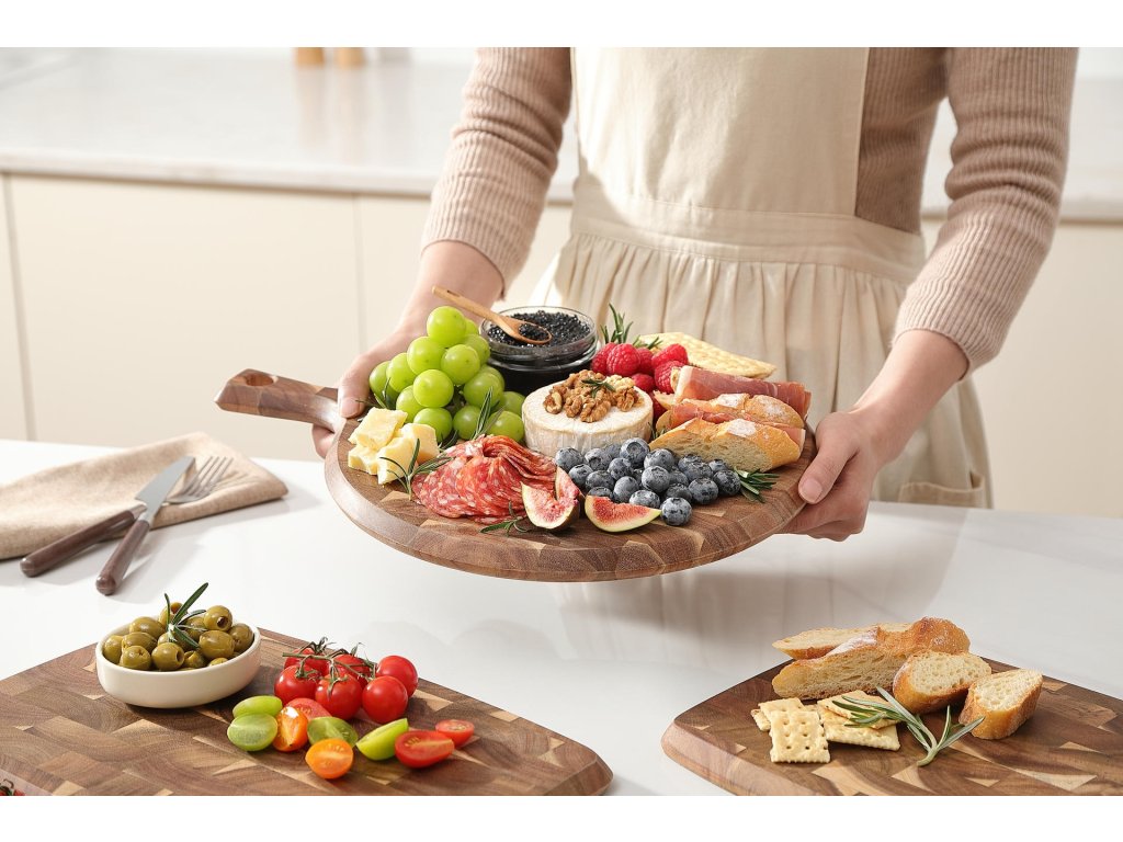 Elegantní kulaté prkénko z prvotřídního akáciového dřeva vyniká svou pevností a přirozenou kresbou. S praktickým uchem pro zavěšení na zeď. ✅Vhodné nejen na krájení, ale i na designové servírování.