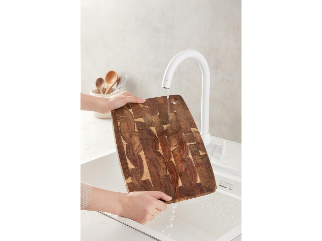 Každé prkénko prochází unikátním více procesovým leštěním, po kterém je povrch velmi hladký, včetně jeho hran. Přírodní povrch umožňuje jeho snadné čištění. Prkénko dosahuje tloušťky desky 1,9 cm z vysoce kvalitního dřeva, které se jen tak nepoškodí. Technika spojování jednotlivých částí akáciového dřeva vytváří jedinečnou texturu desky.