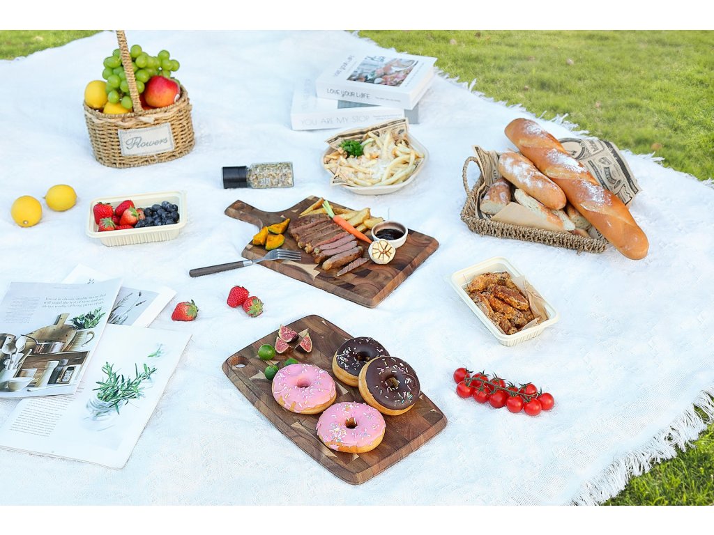 Prkénko s rozměry 36 cm x 24 cm a váhou 966 gramů nabízí ideální kombinaci pro krájení i následné přenášení a servírování surovin přímo na prkénku. Barva a vzhled prkénka se může oproti produktovým obrázkům mírně lišit z důvodu výroby z jiného kusu akáciového dřeva nebo rozdílným stářím dřeva.