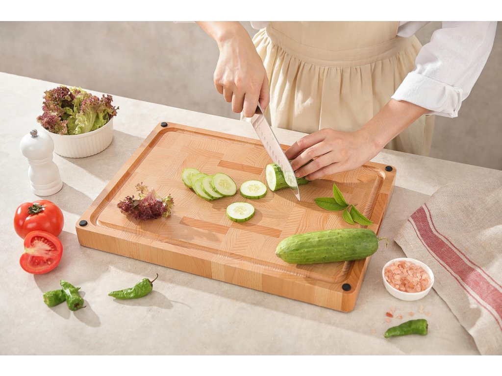 - Šetrné k ostří nožů: Povrch prkénka je dostatečně pevný, ale zároveň jemný k ostří. Tzn. vaše nože vydrží déle ostré.