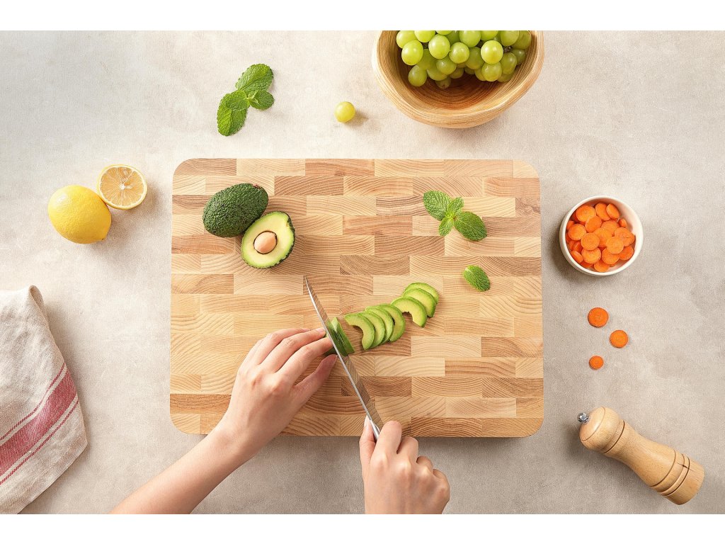 - Tvrdé a houževnaté: Díky těmto vlastnostem je prkénko odolné vůči mechanickému namáhání a poškození kuchyňskými noži.