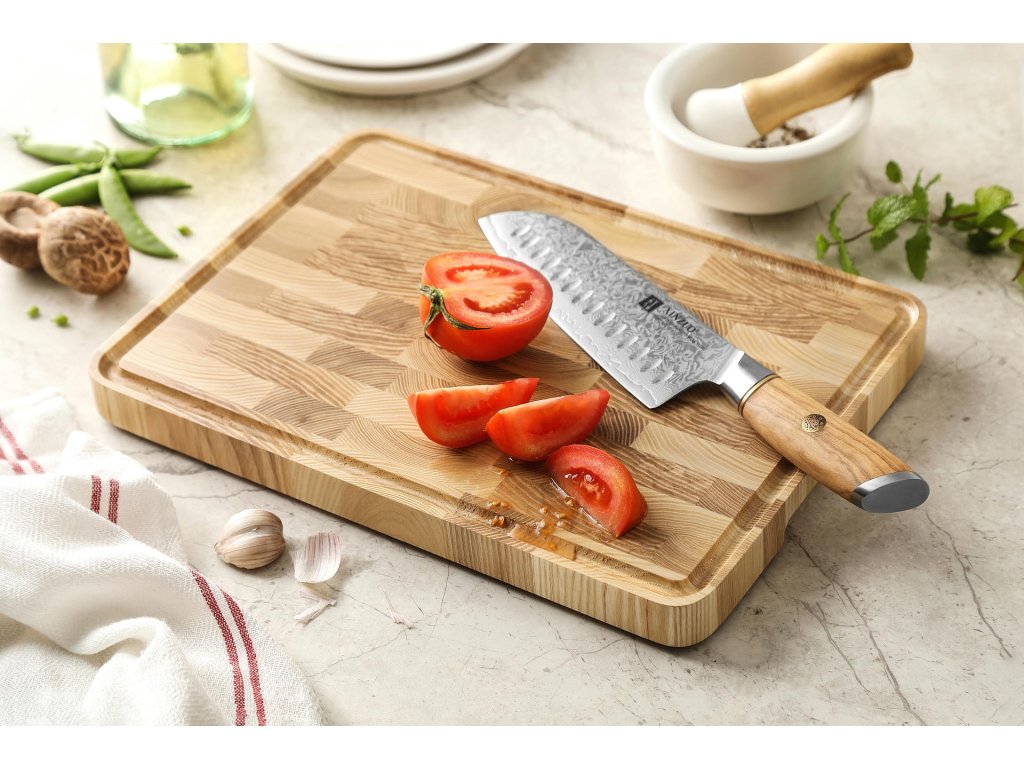 Kvalitní prkénko XinZuo na krájení z jasanového dřeva. Povrch prkénka je velmi jemný a šetrný k ostří kuchyňských nožů. Na první pohled vás zaujme svou krásnou světlou texturou. Kvalitní konstrukce prkénka z jednotlivých kusů dřeva zajišťuje jeho pevnost a odolnosti proti opotřebení.