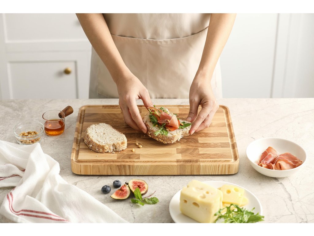 - Pružné a stabilní: Jasanové dřevo se méně ohýbá a praská, takže prkénko vydrží dlouho.