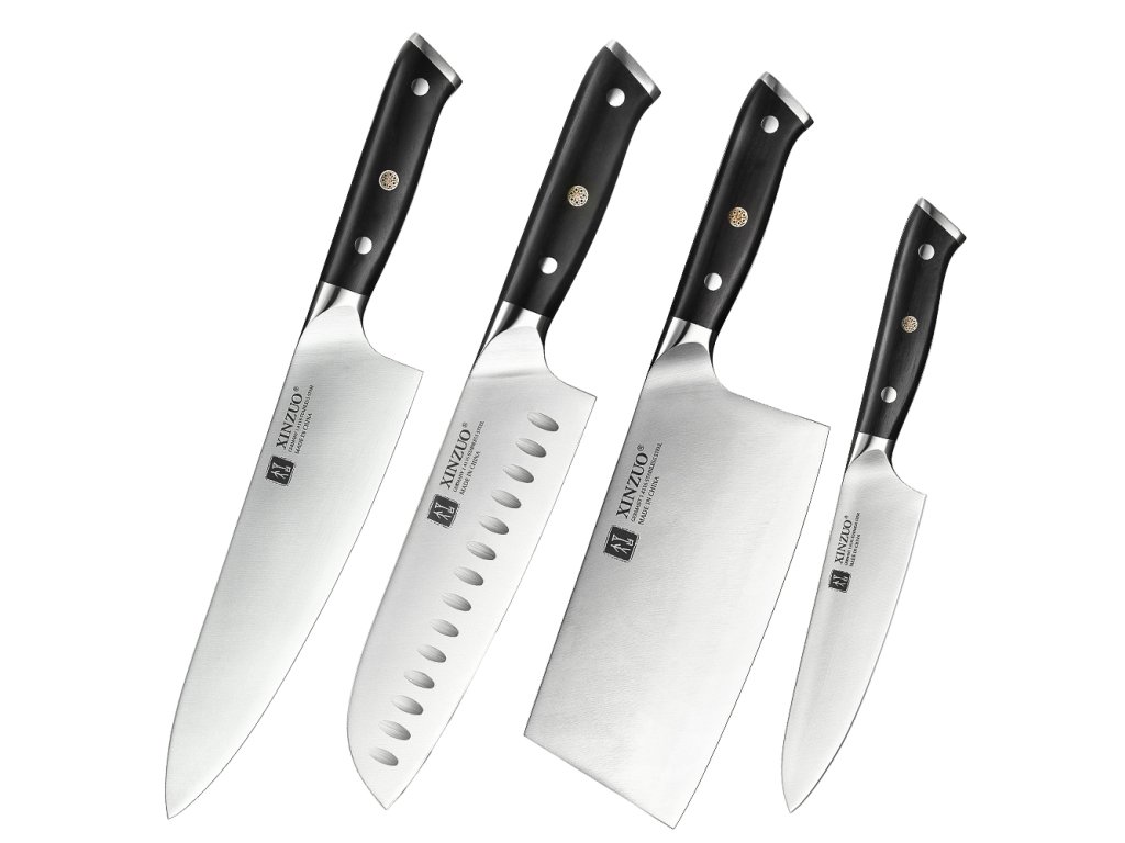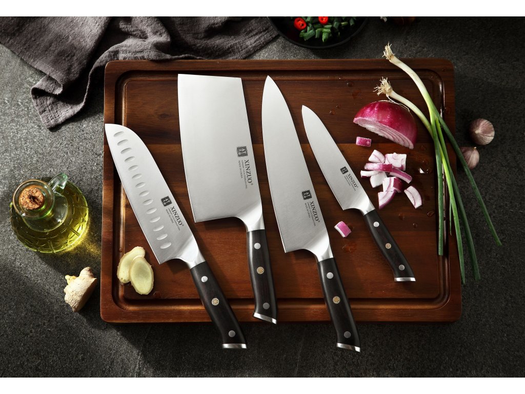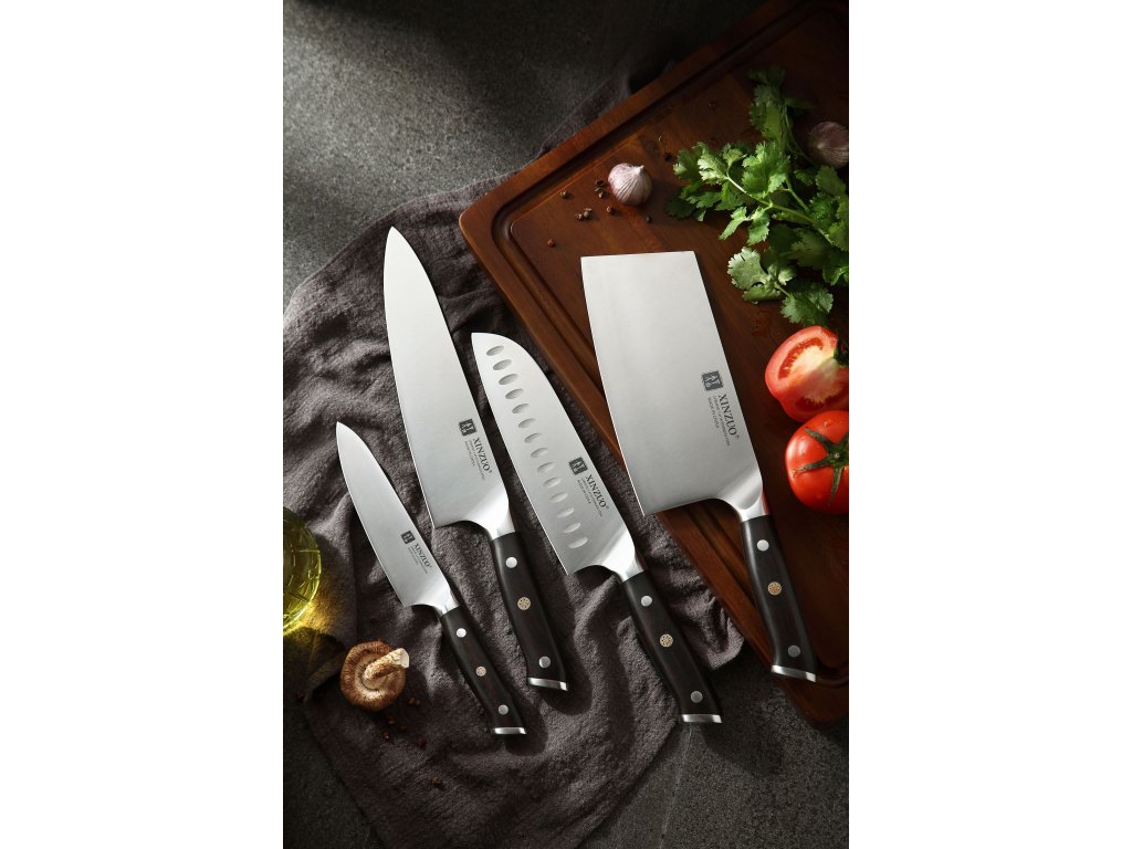Kvalitní sada XinZuo Yu B13S čtyř nožů z německé oceli s ručně opracovaným ostřím a rukojetí z ebenového dřeva.