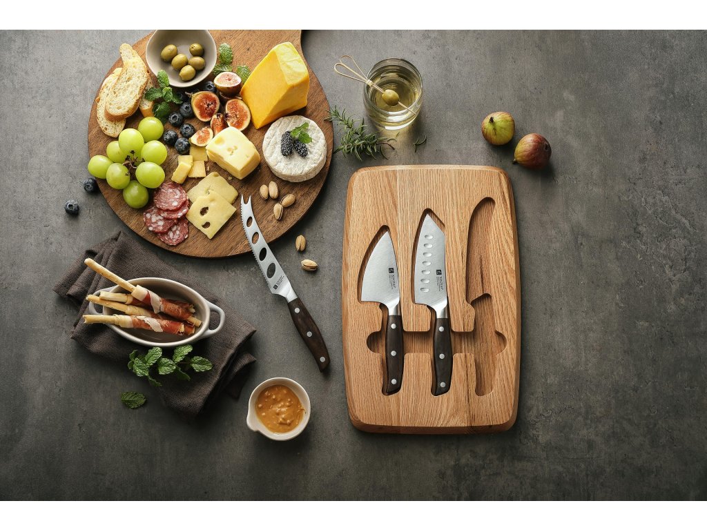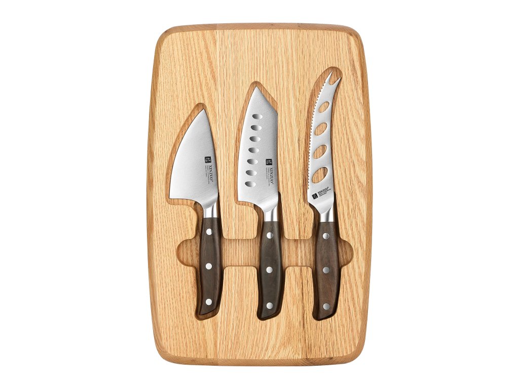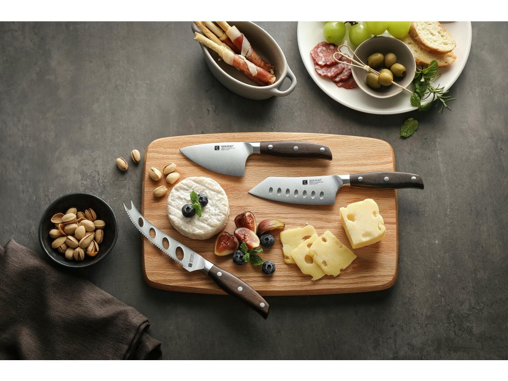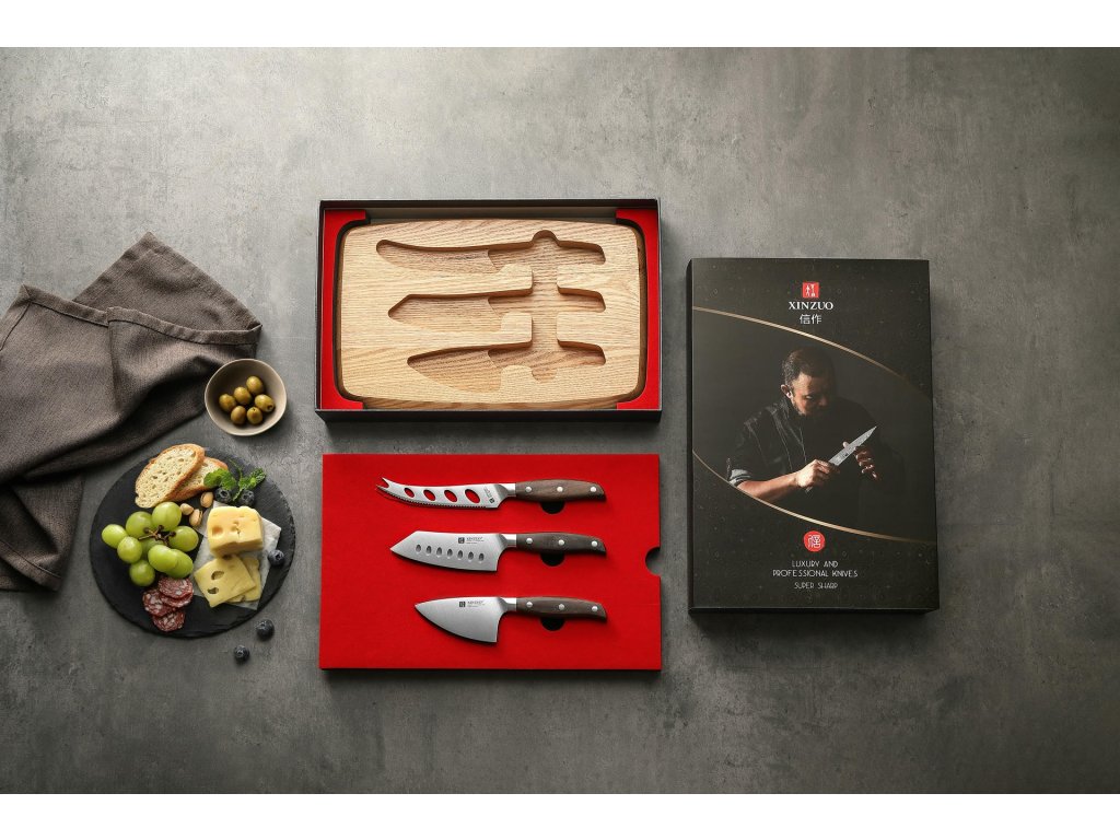 Sada nožů XinZuo B35 Zhi na krájení sýra 3 ks s prkénkem