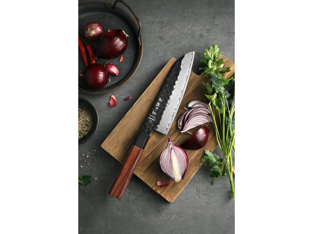 Santoku je celosvětově velmi oblíbený nůž japonského typu. Je na první pohled snadno rozpoznatelný, podle ikonické velmi široké čepele. Poradí si s ovocem, zeleninou i masem. Jeho rozměry umožňují praktické přenášení nakrájených surovin na čepeli nože. Santoku nůž by neměl chybět v žádné domácnosti, ve které mají její členové rádi asijskou kuchyni. Ideální na přípravu zeleniny do japonských a asijských polévek, závitků a hlavních chodů.