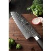 Tento santoku nůž je vyroben z prvotřídní damaškové oceli (damascus steel), ze které se vyrábí ty nejlepší nože. Čepel nože s tvrdostí 60±2 Rockwella je vyrobena ze 67 vrstev. Kvalitní ocel spolu s tradiční technikou výroby zajišťuje dlouhou životnost nože. Povrch nože umožňuje dokonalý řez s minimem tření a lepení surovin. Rukojeť nože je vyrobena ze dřeva Pakkawood, který v čase neměkne a neudržuje zápach. Její dokonalý tvar a délka umožňuje snadné a ladné krájení bez toho, aniž by nůž z ruky vyklouzával. Barva a vzhled materiálu rukojeti nože se může oproti produktovým obrázkům mírně lišit z důvodu výroby rukojeti z jiného kusu dřeva nebo rozdílným stářím dřeva. Odstín kresby na čepeli se může také lišit, protože každý nůž má skládáním vrstev oceli unikátní vzhled.