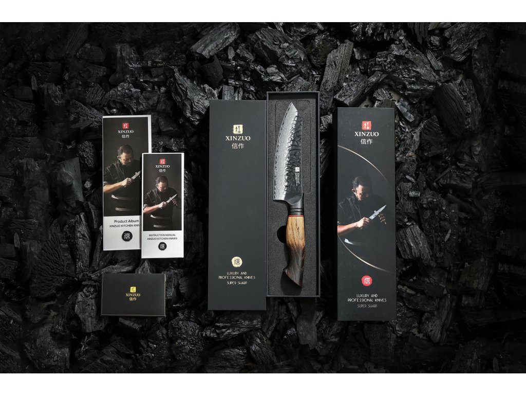 Santoku nůž XinZuo Mo X06 5,5" je zabalený v luxusní dárkové krabičce v černé barvě. Díky tomu pocítíte výjimečnost těchto nožů už při samotném rozbalování. Vnější krabička i vnitřní část jsou šetrné k životnímu prostředí a snadno recyklovatelné. Ideální dárek pro různé životní oslavy a jubilea.