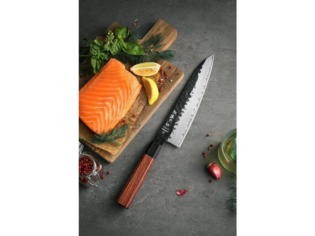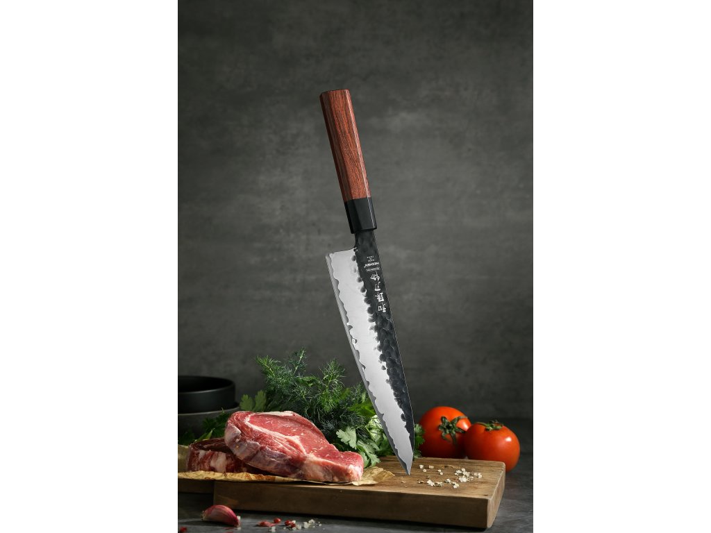 Šéfkuchařký nůž HEZHEN PM8S s velkostí 8,3" pochází z tradičního čínského města nožů Yangjiang, ve kterém se vyrábí ty nejlepší nože celá staletí. Místní mistři si své umění výroby a opracování nožů předávají z generace na generaci. Tento šéfkuchařský nůž patří mezi exkluzivní nože od výrobce XinZuo, které se svou unikátností zasloužili o prodej pod vlastní značkou HEZHEN, jejíž název znamená HE = harmonie a ZHEN = perfektní. Ve volném překladu lze HEZHEN označovat jako značku nožů s dokonalou harmonií. Nože HEZHEN PM8S rozpoznáte na první pohled od ostatních nožů XinZuo nejen podle jiného názvu značky, ale i jedinečného designu čepele a tradiční ergonomické rukojeti v japonském oktagonálním stylu. XinZuo při výrobě tohoto nože HEZHEN využívá to nejlepší z moderní a tradiční výroby nožů. Každý nůž od výrobce XinZuo je jedinečný, díky závěrečnému preciznímu ručnímu opracování.