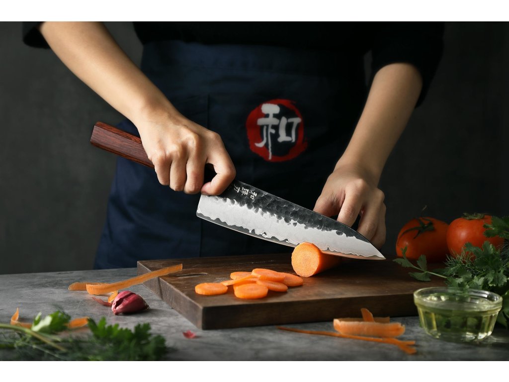 Zajímavost: XinZuo jako přední inovátor v oblasti výroby kuchyňských nožů kombinuje tradiční a nejmodernější techniky výroby. Díky jeho nejmodernější metodě vakuového tepelného zpracování mají kuchyňské nože XinZuo ve srovnání s noži vyrobenými pouze běžným tepleným zpracováním vyšší tvrdost a ostrost, též delší živostnost. Ve spojení s tradičním závěrečným ručním ostřením nožů mistry nožíři, s jejichž umem předávaným z generace na generaci se žádný stroj nemůže srovnávat, mají kuchyňské nože XinZuo i prémiovou ostrost, kterou strojově ostřené nože nedosahují.