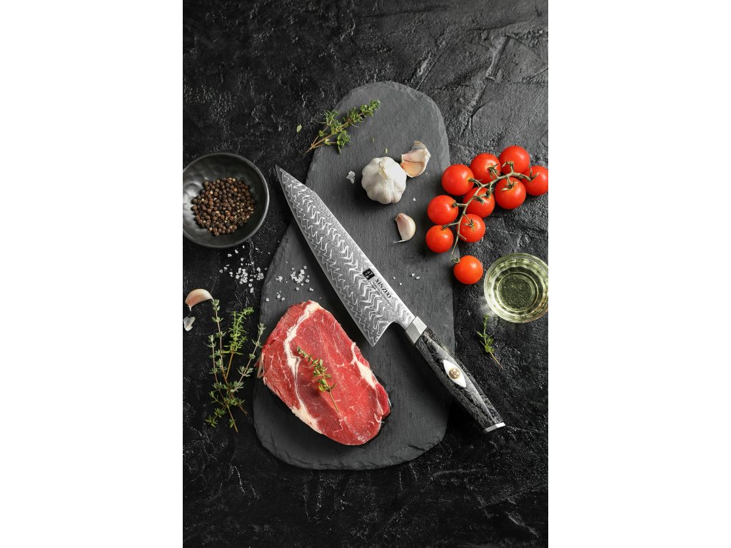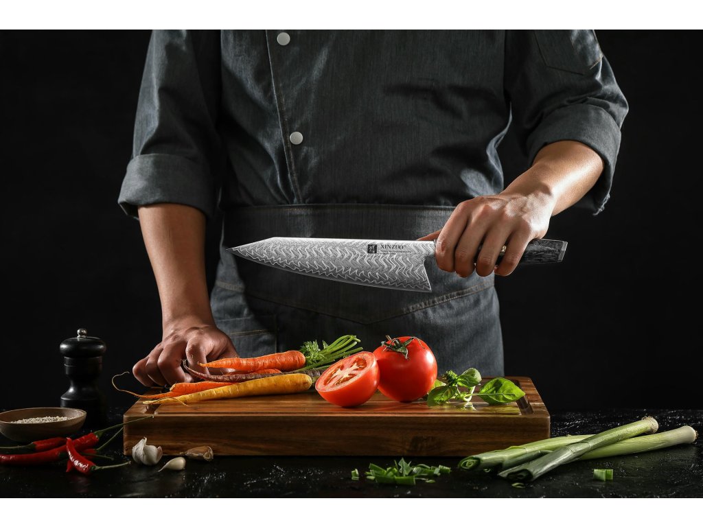 Šéfkuchařský nůž – Univerzální pomocník pro každého kuchaře. Šéfkuchařské nože jsou ceněné pro svou všestrannost. Pokud existuje jeden nůž, který by neměl chybět v žádné domácnosti, pak je to právě tento. Jeho univerzálnost umožňuje nahradit několik specializovaných nožů, takže se stane nepostradatelným pomocníkem v kuchyni. Získáte v něm spolehlivého parťáka pro každodenní přípravu pokrmů. Tvarem čepele a ostřím je ideální pro krájení ovoce, zeleniny i masa.
