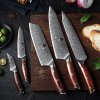 V této sadě jsou nože vyrobeny z prvotřídní damaškové oceli (damascus steel), ze které se vyrábí ty nejlepší nože. Čepel nože s tvrdostí 60±2 Rockwella je vyrobena ze 67 vrstev. Kvalitní ocel spolu s tradiční technikou výroby zajišťuje dlouhou životnost nože. Povrch nože umožňuje dokonalý řez s minimem tření a lepení surovin. Rukojeť nože je vyrobena z bezúdržbového materiálu, který v čase neměkne a neudržuje zápach. Její dokonalý tvar a délka umožňuje snadné a ladné krájení bez toho, aniž by nůž z ruky vyklouzával. Barva a vzhled materiálu rukojeti nože se může oproti produktovým obrázkům mírně lišit z důvodu výroby rukojeti z jiného kusu dřeva nebo rozdílným stářím dřeva. Odstín kresby na čepeli se může oproti produktovým fotografiím lišit, protože každý nůž má skládáním vrstev oceli unikátní vzhled. Sada obsahuje i dřevěný stojánek na nože a nůžky na porcování drůbeže z nerezové oceli 3Cr14.