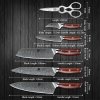 Sada nožů XinZuo Yi B27 s dřevěným stojánkem a nůžkami na porcování drůbeže, které mohou sloužit i pro otevírání nápojů a konzerv. Nože jsou vyrobeny z prémiové damaškové oceli.