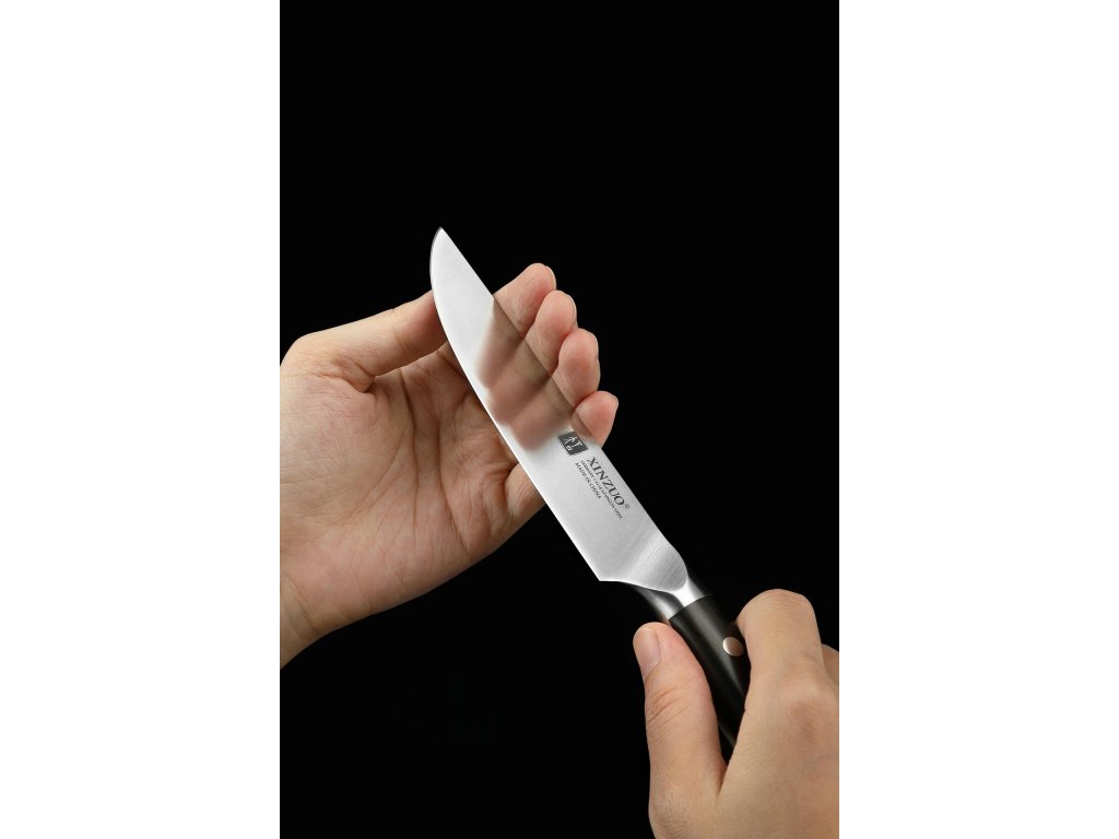 Zajímavost: XinZuo jako přední inovátor v oblasti výroby kuchyňských nožů kombinuje tradiční a nejmodernější techniky výroby. Díky jeho nejmodernější metodě vakuového tepelného zpracování mají kuchyňské nože XinZuo ve srovnání s noži vyrobenými pouze běžným tepleným zpracováním vyšší tvrdost a ostrost, též delší živostnost. Ve spojení s tradičním závěrečným ručním ostřením nožů mistry nožíři, s jejichž umem předávaným z generace na generaci se žádný stroj nemůže srovnávat, mají kuchyňské nože XinZuo i prémiovou ostrost, kterou strojově ostřené nože nedosahují.