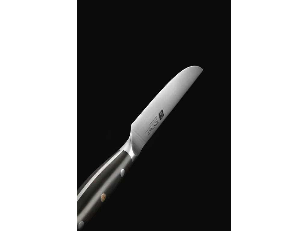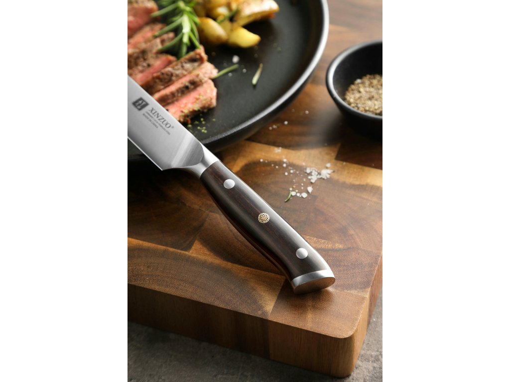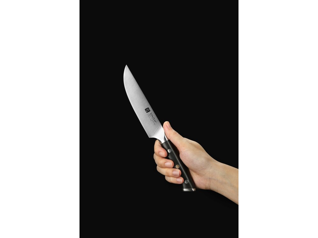 Steakový nůž nůž XinZuo Yu B13S s velkostí 5" pochází z tradičního čínského města nožů Yangjiang, ve kterém se vyrábí ty nejlepší nože celá staletí. Místní mistři si své umění výroby a opracování nožů předávají z generace na generaci. XinZuo při výrobě tohoto nože využívá to nejlepší z moderní a tradiční výroby nožů. Každý nůž od výrobce XinZuo je jedinečný, díky závěrečnému preciznímu ručnímu opracování.