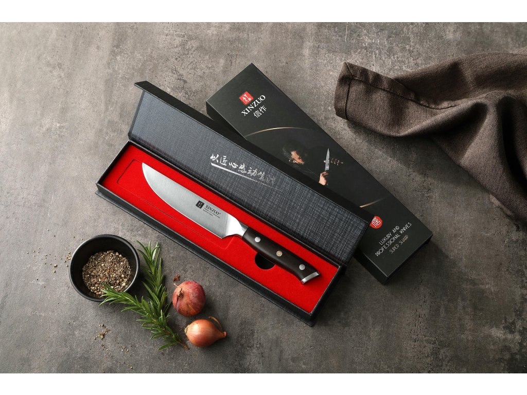 Steakový nůž XinZuo Yu B13S 5" je zabalen v luxusní dárkové krabičce, se kterou je ideálním praktickým dárkem do domácnosti. Svým luxusním vzhledem dárková krabička i kvalitní nůž od výrobce XinZuo udělají radost každému obdarovanému.