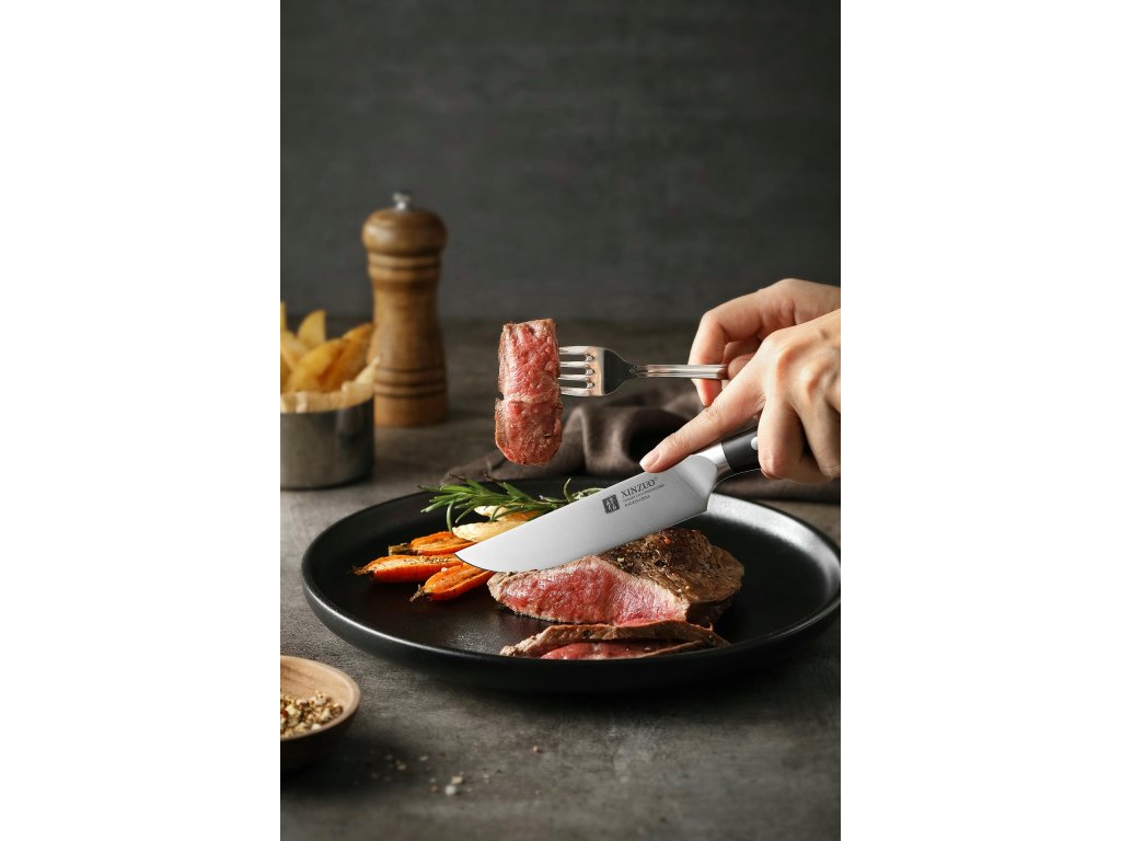 Steakové nože jsou základem pro kvalitní gastronomický zážitek z dobrého steaku. Není nic horšího nežli přetažený steak a nekvalitní nůž, který maso spíše potrhá a poškodí, čímž dojde k vytečené veškeré šťávy. Kvalitní steakové nože od XinZuo vám dokáží, že steak lze krájet ladnými řezy bez potřeby použití velké síly. Vzhledem k oblibě konzumace masa a steaků v České republice by steakový nůž by neměl chybět v žádné domácnosti.