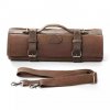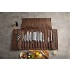 Elegantní taška na nože v hnědém provedení se dvanácti kapsami pro nože a příslušenství XinZuo. Vhodná pro profesionální i domácí kuchaře.