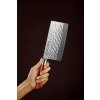Rukojeť TAO nože HEZHEN z řady Master B30R lze považovat za umělecké dílo. Je navržena s důrazem na ergonomii a pro pohodlný úchop i při dlouhodobém držení s dokonalým vyvážením. Díky jedinečnému tvaru a ergonomii rukojeti je tento nůž vhodný pro pohodlné krájení levou i pravou rukou. Rukojeť je vyrobena z kvalitního Rosewood dřeva, které je známé svou stálostí i ve vlhkém prostředí. V čase neměkne, nepraská a nevybledne. Nůž je navržen pro každodenní používání s dlouhou životností nejen čepele, ale i rukojeti. Nože HEZHEN z řady Master B30R vás zaujmou na první pohled a zaručeně je rozpoznáte od jakékoliv jiné řady nožů, díky jedinečnému tvaru rukojeti a netradičnímu vzhledu, na který byl kladen velký důraz. Unikátní zpracování rukojeti podtrhuje měděný kroužek a umělecký mozaikový nýt. Barva a vzhled materiálu rukojeti nože se může oproti produktovým obrázkům mírně lišit z důvodu výroby rukojeti z jiného kusu dřeva nebo rozdílným stářím dřeva.